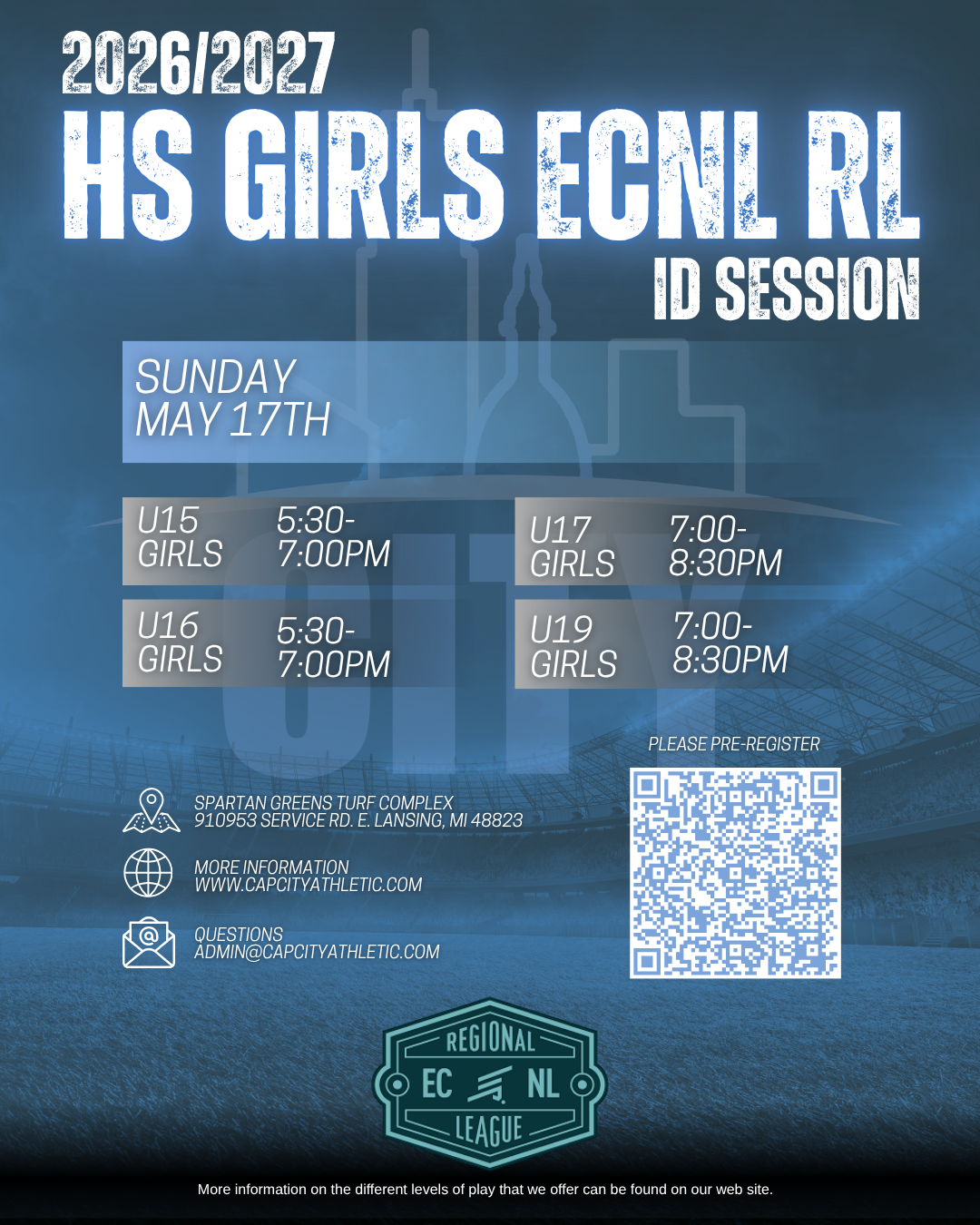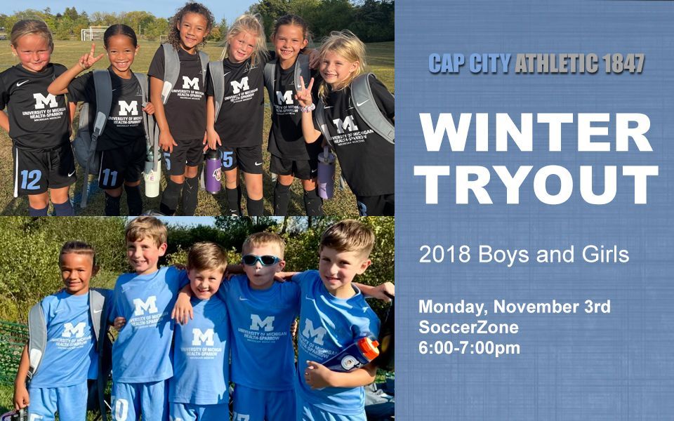 3-4 (2020-2021 Birth Years): Cap City Mini Kickers. Introduction to the game. Foster an excitement for playing the game of soccer. Year-round programming available.